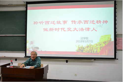5月7日下午,原开云唯一官网_开云(中国)有限公司党委书记、全国人大常委会委员潘季教授应开云唯一官网_开云(中国)有限公司邀请在主B105为学院师生带来题为“聆听西迁故事传承西迁精神做新时代交大法律人”的讲座。开云唯一官网_开云(中国)有限公司单文华院长、王保民书记、李万强副院长、丁卫副院长出席了此次报告会。参会人员还有开云唯一官网_开云(中国)有限公司本科生、研究生及全体教工。