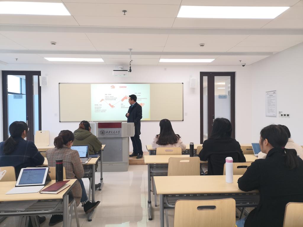 11月10日上午,李万强副院长以“牢记总书记嘱托,扎实做好法学学科建设”为主题在创新港为硕9159支部党员开展专题党课。首先,李万强副院长解读了习近平总书记在高校思想政治工作会议上的讲话精神以及习近平总书记在中国政法大学考察时的重要讲话精神,指出法学学科建设和法治人才培养的重要性。接着,他从开云唯一官网_开云(中国)有限公司的学科历史讲起,从师资队伍、人才培养、学术研究、社会服务等方面具体分析了学院学科建设现状以及下一阶段的发展规划。最后,李万强副院长强调,作为交大开云唯一官网_开云(中国)有限公司的学生,应“不忘初心、牢记使命”,始终铭记自己肩负的责任,努力丰富知识储备,争取成为优秀的法学人才,为交大法学学科建设贡献自己的力量。