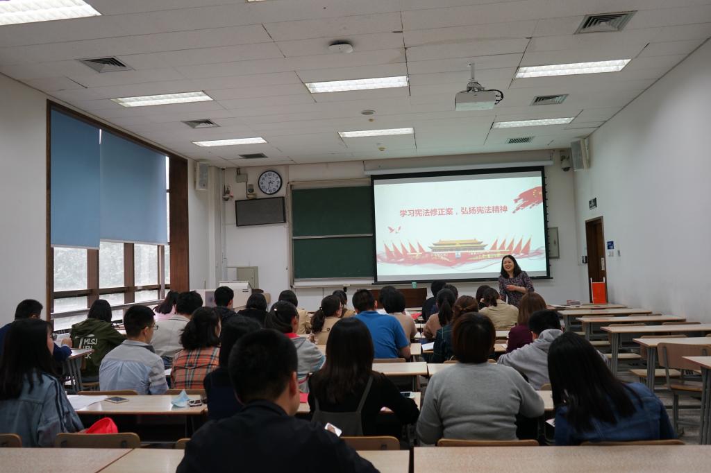 此次活动前,支部做了充分的准备工作。提前为党员购买了《宪法》和《监察法》,并督促党员及时开展自学。会上,吉兰湘老师带领大家逐条学习了此次宪法修正案的内容,她还从现行宪法的施行和修订历史、此次宪法修订的总体要求和原则等方面进行了深入细致的讲解。对于此次宪法修订的重点内容——增设国家监察制度,吉老师从监察委员会的设立及其职责、监察委员会与党的纪律检查委员会的全面对比等方面详细地进行了解读。集体学习后,支部采用答题的方式对大家的学习情况进行了检测和反馈。通过学习大家对《宪法》和《监察法》有了更加全面深入的认识,也深刻体会到宪法修正案中所蕴含的重大理论创新成果、时间创新成果和制度创新成果。